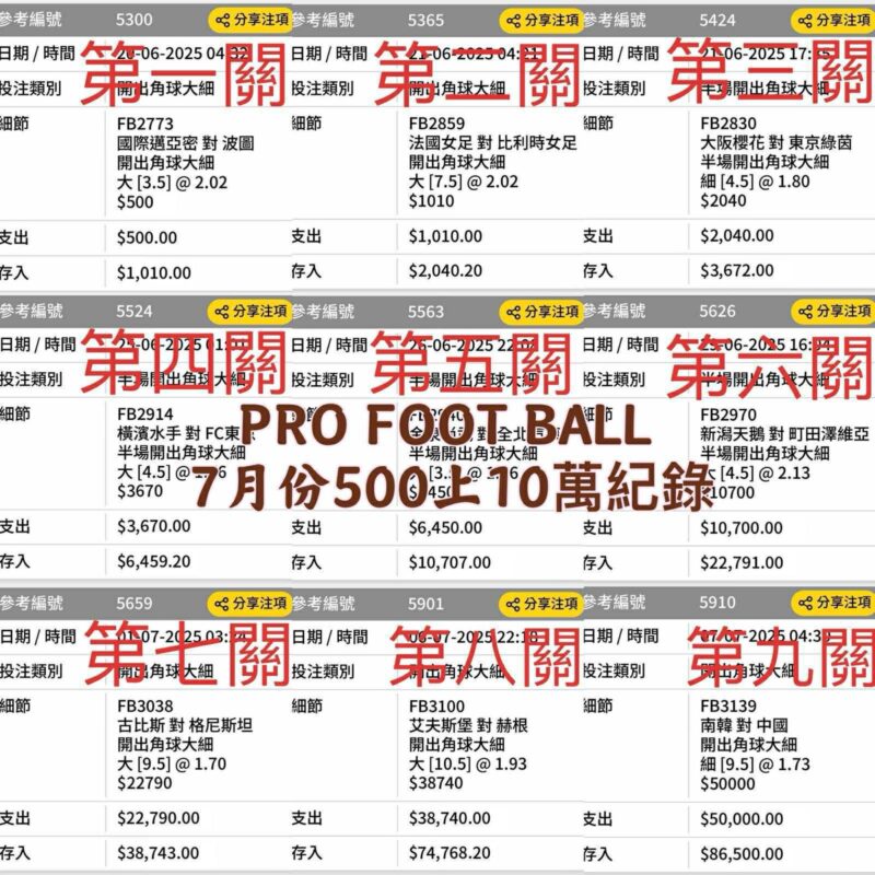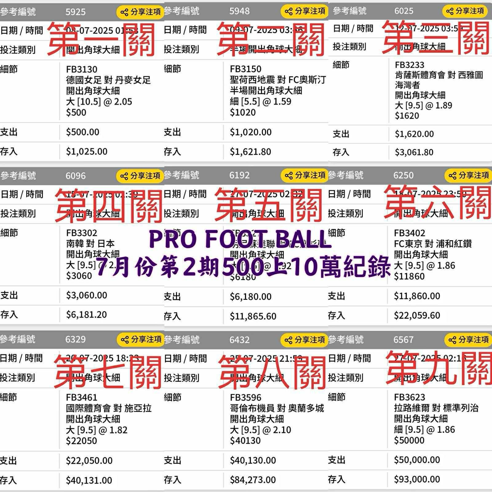 2025年7月份達標紀錄, 500上10萬紀錄圖片– 7月份500上10萬真飛及收據 Posted on 04/07/202504/10/2025 by teamwachris 04 7 月 過關四串一,總派彩金額合共超過63萬 圖片– 8月份500上10萬真飛及收據